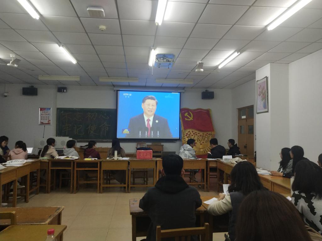 首先所有成员共同学习习近平总书记在“不忘初心、牢记使命”主题教育工作会议上的讲话,进一步把主题教育的精神学深悟透.随后,共同观看了央视新闻联播“中国共产党第十九届中央委员会第四次全体会议公报全文播报”。最后,一起学习陈希在部分中管高校 “不忘初心、牢记使命”主题教育工作座谈会上的讲话,更好的引导学生切实增强政治责任感和历史使命感。