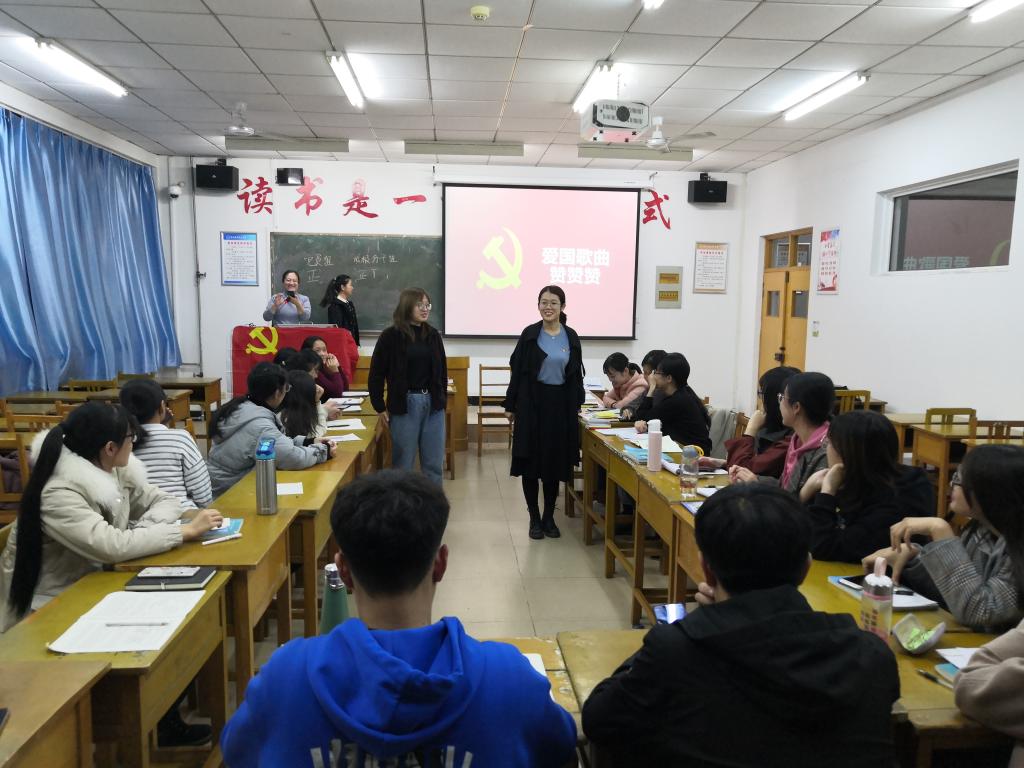 根据学院党委“不忘初心、牢记使命”主题教育要求,为提升主题教育开展效果,增强同学们学习新思想的积极性、主动性,增强青年学子爱国热情,2019年11月19日下午,bat365在线中国官网登录入口物流管理党支部举办“忆峥嵘岁月---爱国歌曲邀你来猜”主题党日活动。本次活动由党支部党员牵头组织,号召积极分子和普通同学加入其中,依托“学习强国”平台选取爱国主义题材歌曲,由党员带队分别选拔积极分子和普通同学组成六支竞赛队伍,依次开展了“试听练耳”“经典冲关”“力拔头筹”“王牌对战”四个环节的激烈比拼,最终评出一等奖一名,二等奖二名,三等奖三名。活动最后,支部书记总结了本次活动开展的目的和意义,希望同学们更深刻的理解爱国主义歌曲的时代背景和发展历程,振奋民族精神,激发爱国热情,增强文化自信,不忘初心使命,为建设和谐新中国奋发图强,弘扬好时代主旋律。