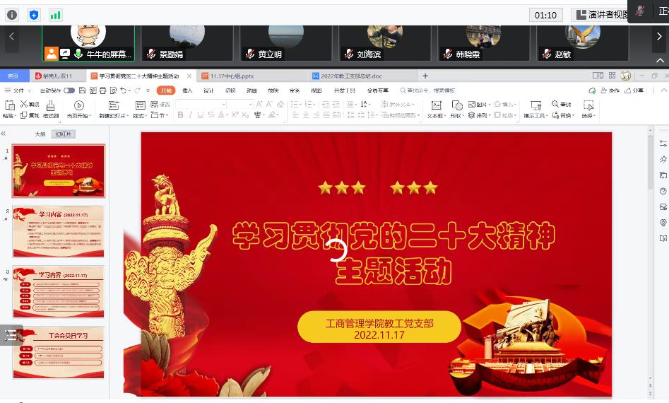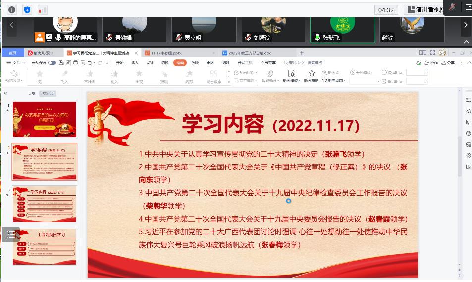 为深入推动习近平新时代中国特色社会主义思想和党的二十大精神入脑入心,迅速掀起学习宣传贯彻党的二十大精神的高潮,11月17日下午,bat365在线中国官网登录入口教工党支部在腾讯会议举行了党的二十大精神主题学习活动。