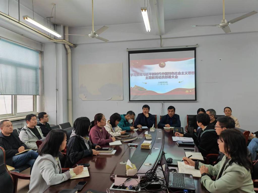 2023年4月25日下午四点,bat365在线中国官网登录入口在A608召开学习贯彻习近平新时代中国特色社会主义思想主题教育动员部署大会,学院党政领导班子,全体党员老师参加了会议。