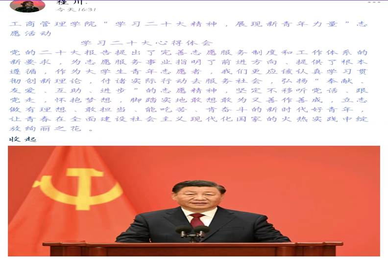 bat365在线中国官网登录入口青年志愿者协会向学院青年志愿者发起倡议,号召志愿者积极学习贯彻党的二十大精神,学院青年志愿者以集中和分散两种形式开展学习,并将学习心得在新媒体平台分享,志愿者表示,“党的二十大报告提出了完善志愿服务制度和工作体系的新要求,为志愿服务事业指明了前进方向、提供了根本遵循,作为大学生青年志愿者,我们更应该认真学习贯彻创新理论,付诸实际行动去服务社会,弘扬“奉献、友爱、互助、进步”的志愿精神,坚定不移听党话、跟党走。”