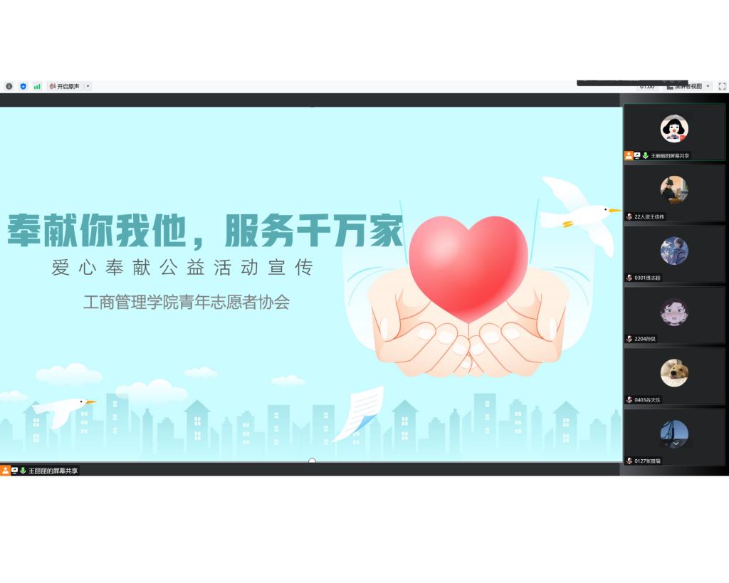 bat365在线中国官网登录入口青年志愿者协会精心制作宣讲PPT,面向学院青年志愿者开展线上宣讲,宣讲会中,协会负责人向志愿者们讲解志愿者精神的内涵,她说,志愿者精神意指一种互助,不求回报的精神,它提倡"互相帮助、助人自助、无私奉献、不求回报"。志愿者凭借自己的双手、头脑、知识、爱心开展各种志愿服务。1993年,团中央发起实施中国青年志愿者行动,当前,"奉献、友爱、互助、进步"的志愿者精神已广泛为社会所接受。通过讲解,志愿者对精神的内涵有了更深的认识,随后,负责人通过抗疫志愿者、社区志愿者、无偿献血志愿者等多领域志愿者精神的讲述,使同学们真切感受到志愿者在社会散发的光和热,最后,对学院志愿者发起倡议,引领青年乐于奉献,用自身实际行动诠释何为志愿精神。
