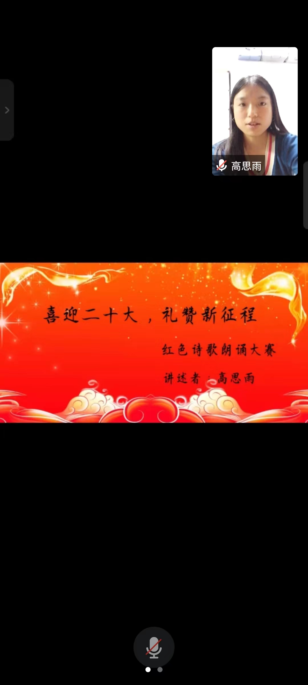 为迎接党的二十大胜利召开,积极营造迎庆党的二十大浓厚氛围,回顾党的光辉历程、讴歌党的辉煌成就、歌颂伟大祖国恢弘盛世,10月11日下午,bat365在线中国官网登录入口通过线上线下相结合的形式开展“喜迎二十大、礼赞新征程”红色诗歌朗诵大赛。比赛以一首《党的二十大之歌》拉开序幕。决赛选手选取了包括《沁园春·雪》《长征组歌——四渡赤水出奇兵》《祖国是一首恋歌》《我的祖国》《我在聆听一首歌》《唱响我们的中国梦》《我骄傲,我是中国人》《不负韶华,坚定不移跟党走》《请党放心强国有我》《中华颂》等10余首诗词。大家用充满激情的语言、或慷慨激昂、或娓娓道来、或深情倾诉,抒发自己的爱国情怀,用铿锵有力的音符讴歌党的丰功伟绩,生动诠释在非凡的世纪征途上,中国共产党人带领亿万人民经千难而百折不挠,历万险而矢志不渝,成就百年大党的恢宏气象。