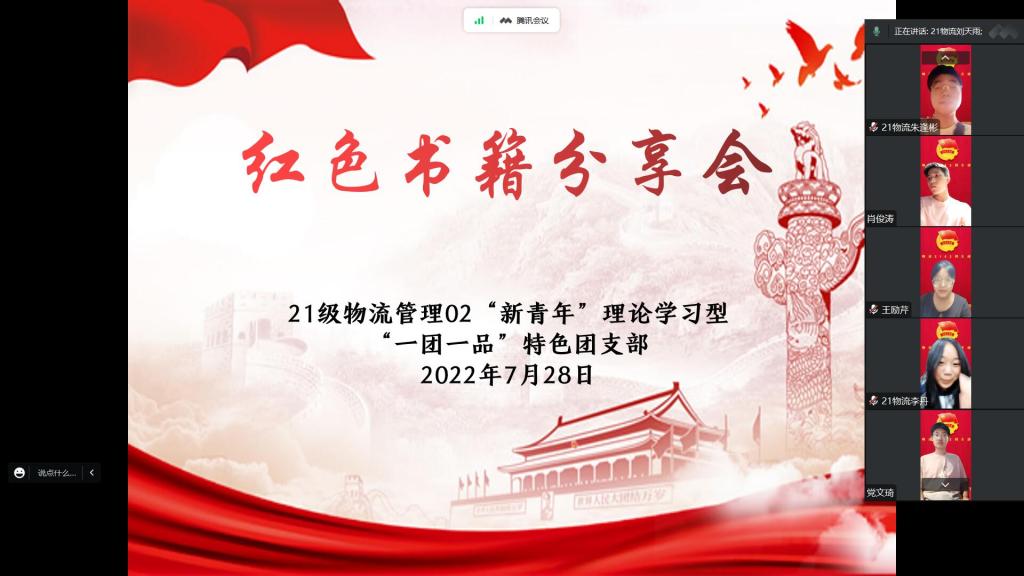为深化对习近平新时代中国特色社会主义思想的理解,引导同学们树立正确的人生观、价值观和世界观,2022年暑期,bat365在线中国官网登录入口21级物流管理02“新青年”理论学习型“一团一品”特色团支部开展阅读红色书籍活动,并于7月28日召开红色书籍分享交流会。