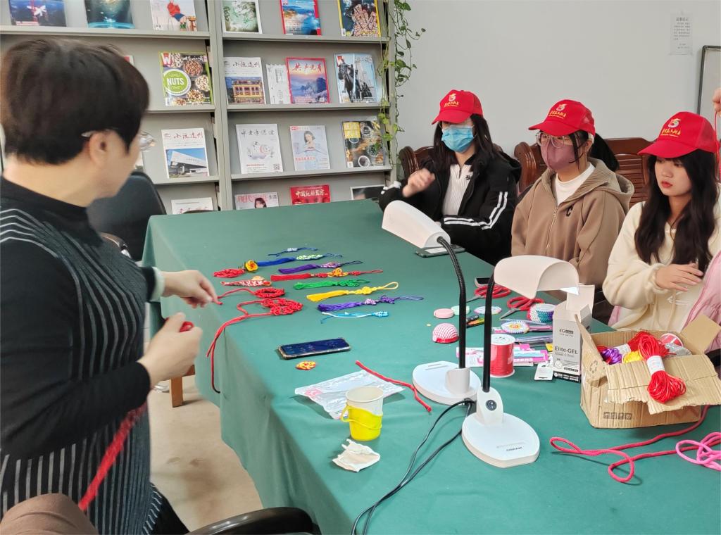 活动前期,活动负责人提前在志愿者群分享了中国结的样式及其编制方法,让同学们先自行学习。活动当天,老师细心的教授同学们如何制作美丽的中国结,通过绕绳、压线、打结、扯线,最后再装饰上喜欢的铜钱、玉片,加上流苏,一个美丽的中国结就制作好了。中国结的编织方法各式各样,几根绳子弯弯绕绕就形成了一个精致漂亮的中国结。在制作过程中,老师和志愿者们的氛围融洽温馨,此次编织中国结活动在欢声笑语中圆满结束。