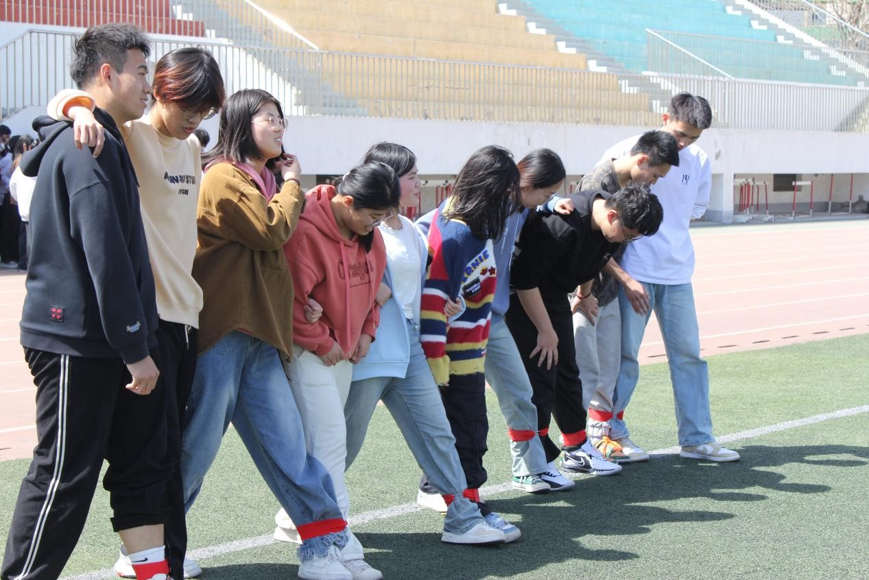 此次运动会采用趣味运动比赛的形式进行,分为无间道、多人多足、不倒森林、合力搭建、摸石过河和无敌风火轮等6个环节,每个团队5男5女,所有参赛团队依次完成6个环节,累计用时最少团队获胜。各年级、各专业同学积极报名,共120余名学生自愿组成12个团队参加此次比赛。活动现场,选手们热情澎湃,在愉快的氛围中逐渐突破自我,体验运动的快乐,体会团队协作的力量。最终,由张雅娟、张艳蕊等10人组成的“蛋仔排队”团队获胜,并将代表学院参加学校的心理运动会。