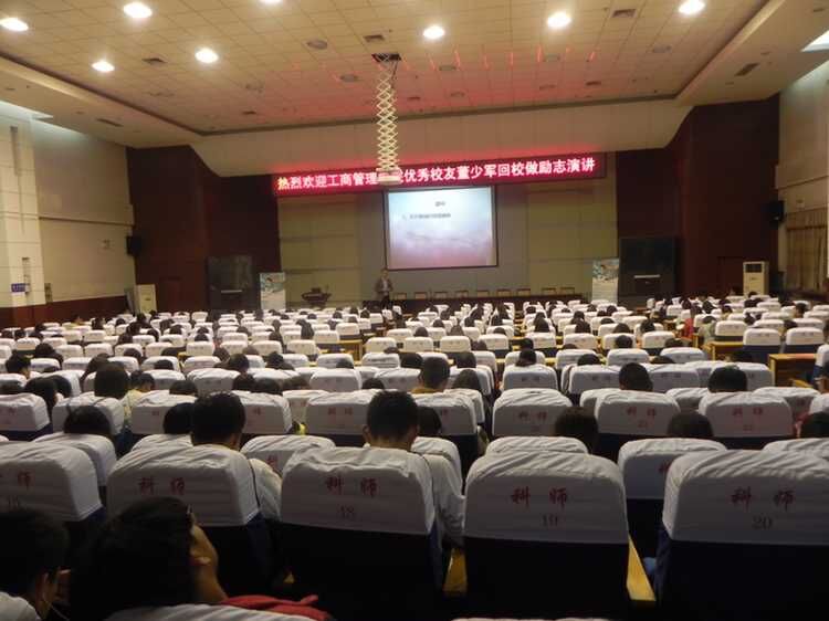 为了不断培育和践行社会主义核心价值观,充分发挥优秀校友成功经历对青年大学生的激励作用,进一步推动“三风”专项建设活动,bat365在线中国官网登录入口积极响应学校号召,邀请董少军校友于2015年10月20日晚7:00在学术报告厅做励志演讲,学院老师和全体学生400余人参加了活动。