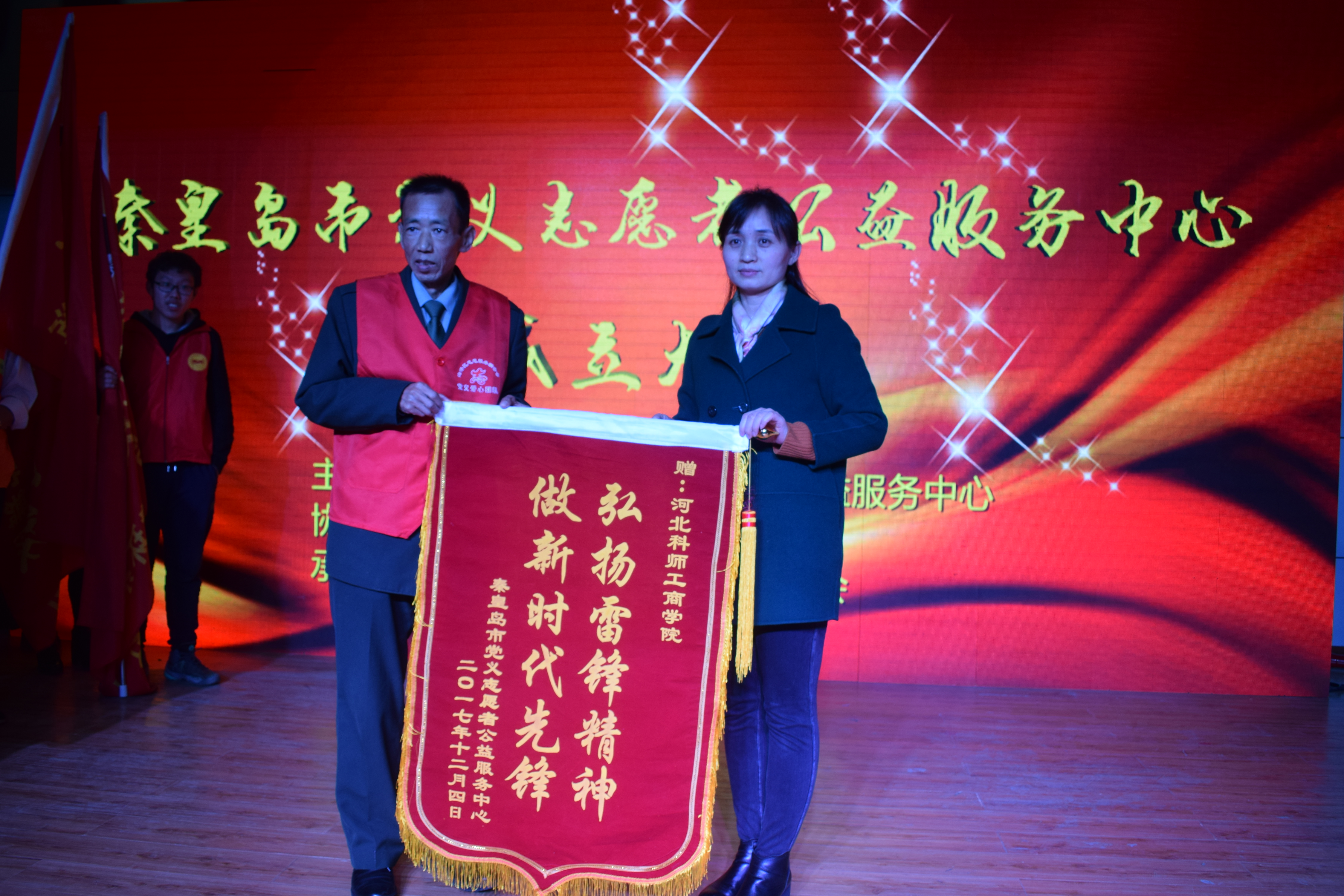 2017年12月4日,bat365在线中国官网登录入口于多功能厅成功承办了秦皇岛市党义志愿者公益服务中心成立大会。市委常委、组织部部长、统战部部长刘文萍,bat365在线中国官网登录入口党委书记靳占忠,秦皇岛市党议志愿者服务中心主任沈汝波,市文明办主任薛顺平,市民政局副局长王勇刚,市委宣传部副调研员郭大冬,秦皇岛市志愿服务基金会理事长曹丽荣,海港区委常委宣传部部长候葵然,海港区委常委组织部部长、统战部部长詹立军,bat365在线中国官网登录入口组织部部长田毅,bat365在线中国官网登录入口宣传部部长、统战部部长唐代清等出席了本次大会。