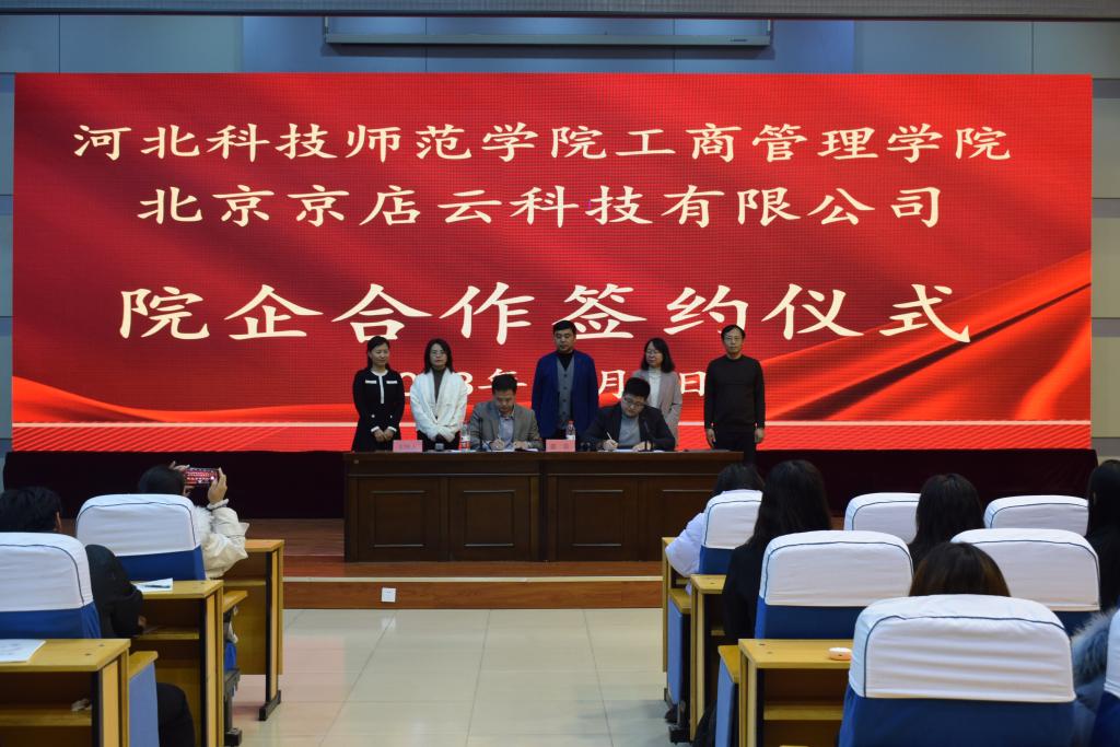 座谈会后,bat365在线中国官网登录入口与北京京店云科技有限公司达成院企合作意向,并举办签约仪式,双方签订了“院企合作”框架协议,400余名师生共同见证了此次学院高质量发展“院企合作”的重要时刻。双方将发挥各自优势,开展多层次、多形式的交流与合作,深化校企协同育人。