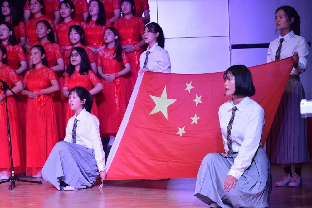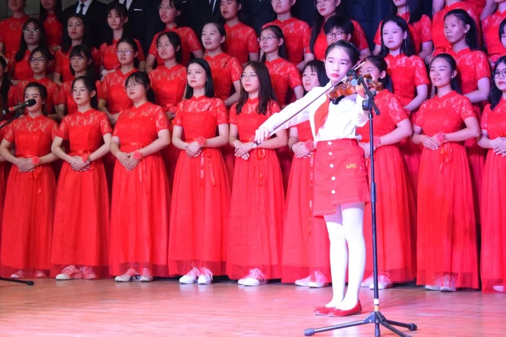 比赛中,同学们着装整齐、饱含激情、用自己高亢嘹亮的歌声歌唱祖国、颂扬祖国。《我和我的祖国》、《国家》、《歌唱祖国》、《再一次出发》、《我们都是追梦人》等一首首耳熟能详的红色歌曲回荡在舞台上空,充分表达了同学们对祖国母亲的热爱,同学们声情并茂的合唱不时赢得现场观众的阵阵掌声。