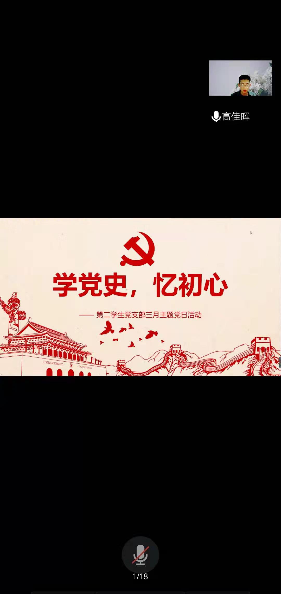 2021年3月28日晚7点30分,bat365在线中国官网登录入口第二学生党支部在线上平台开展了“学党史、忆初心”主题党日活动,全体党员到场参加。活动由支部书记主持,首先给全体党员讲解了党史的发展脉络,之后,支部成员通过观看视频、党史故事分享、共唱爱国歌曲、分组讨论忆初心等形式结合展开,通过本次活动,支部党员们对习近平新时代中国特色社会主义思想和中国共产党的百年光辉历程有了更深层次的了解,思想进一步得到洗礼,更坚定了理想信念,党员们纷纷表示,要自觉做共产主义远大理想和中国特色社会主义共同理想的坚定信仰者和忠诚实践者,肩负起时代使命,在全面建设社会主义现代化的新征程上挥洒汗水、贡献青春力量。