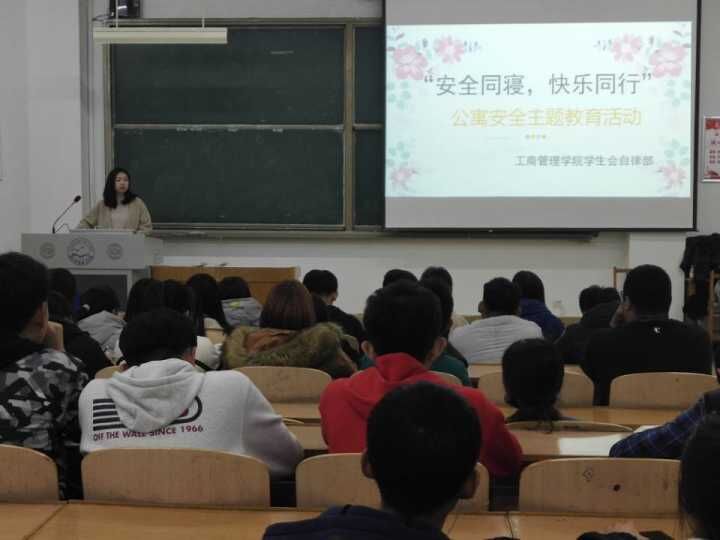 11月14日晚,bat365在线中国官网登录入口“安全同寝,快乐同行”公寓安全主题教育活动启动仪式在B301教室举行。bat365在线中国官网登录入口公寓管理负责人、学生会自律部成员、各班班长及生活委员参加了启动仪式。