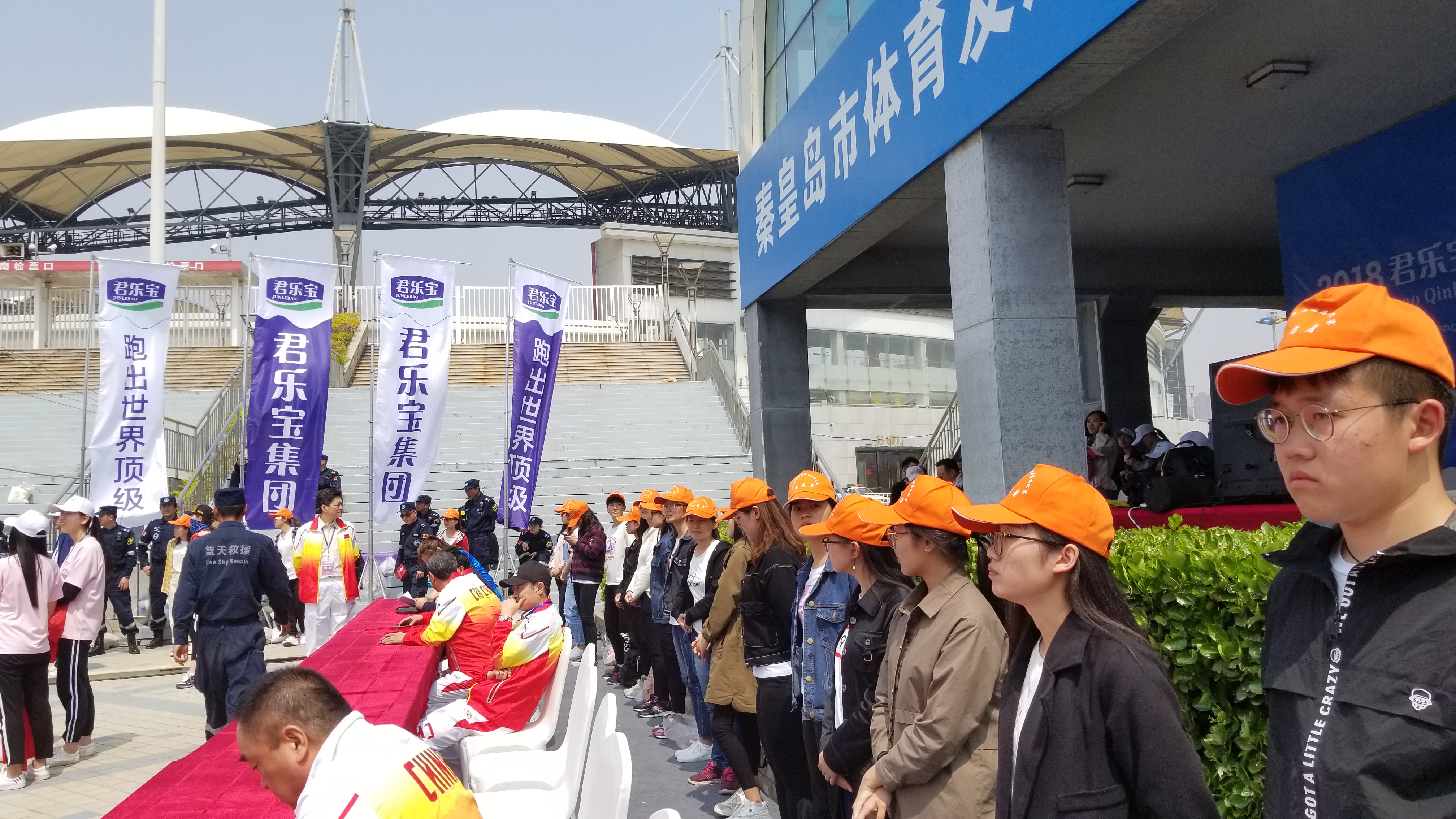 2018年5月13日早8:00,秦皇岛市举办秦皇岛国际马拉松暨全国马拉松锦标赛。bat365在线中国官网登录入口由党委副书记副院长李强华带队,学工办主任韩晓霞、专职辅导员赵卓、徐景升、班主任王涛四位老师带领200名马拉松志愿者对秦皇岛马拉松比赛进行赛道安保志愿服务。