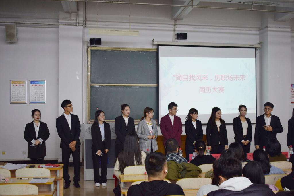 2019年10月31日,bat365在线中国官网登录入口“简自我风采,历职场未来”简历设计大赛在b103举办,人力资源管理教学部和全体学工办老师出席此次大赛。
