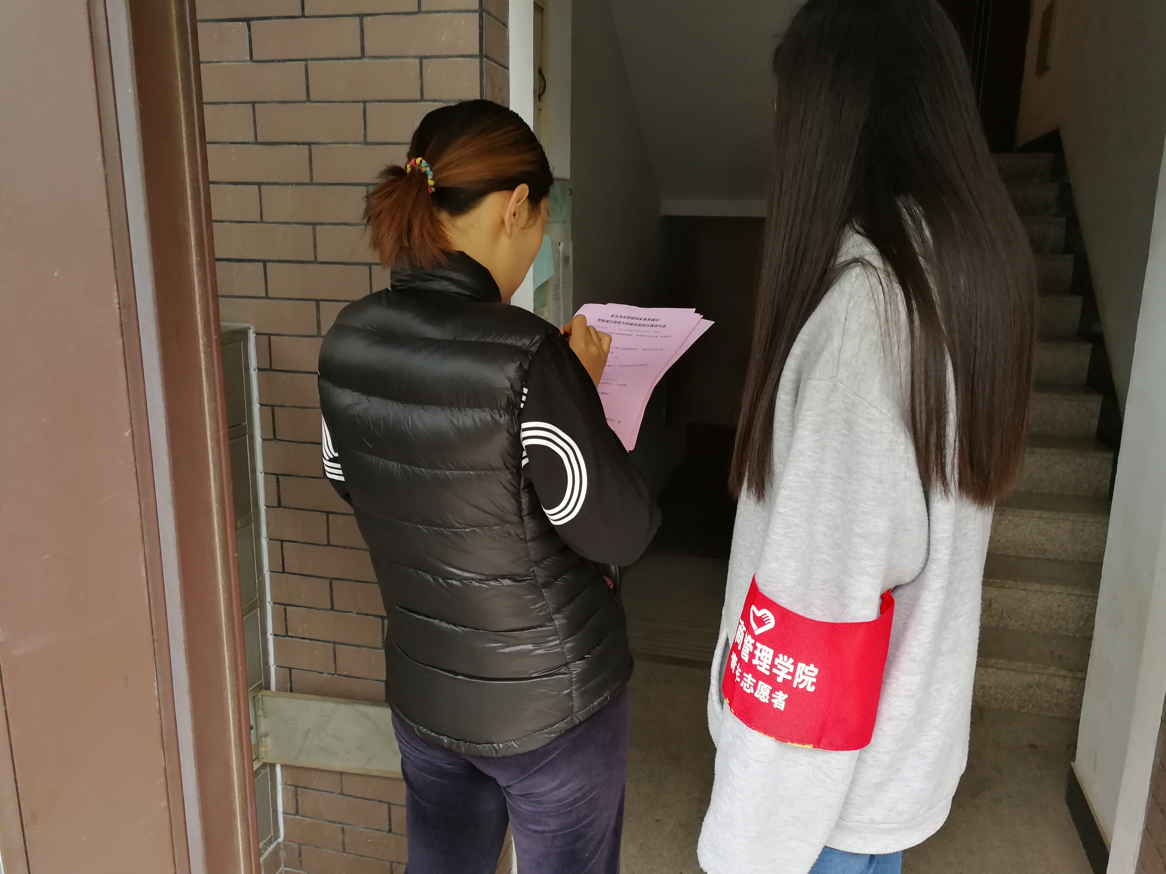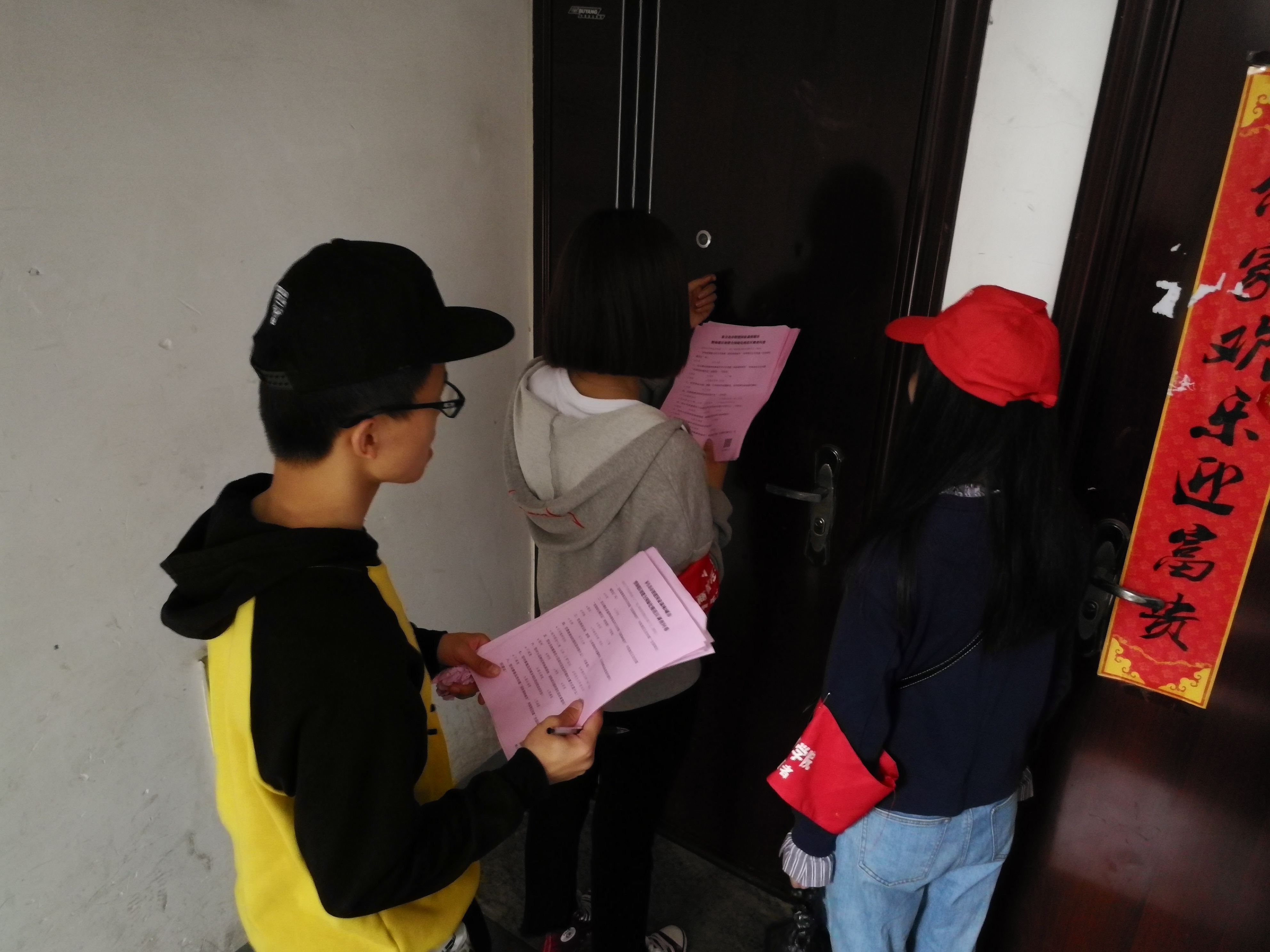 活动当天八点半,志愿者们就已集合完毕,发放必要工具后,在负责人的带领下前往森林逸城小区。经过细致认真的部署,以小组为单位,有组织的、有条理的进行活动。活动以入户走访、问卷调查、发放宣传资料等形式提高社区居民对创建森林城市的认识,并征集就相关问题居民的意见和建议。